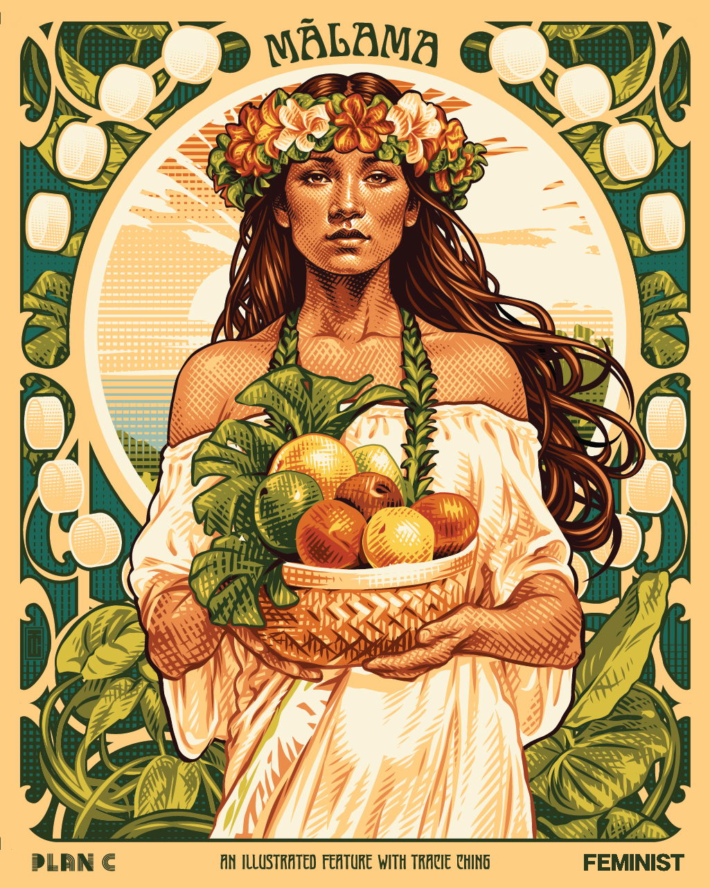 I was born on the island of Oʻahu but moved away when I was young. To heal some of my diasporic wounds, I earned a degree in Hawaiian Studies to better understand my people and my culture. One thing that was clear in my studies was the importance of mālama. In the Hawaiian language mālama has a nuanced meaning - to take care of, preserve, protect, save. It is often used in reference to ka ʻāina, or the land. In Hawaiian culture, everything and everyone throughout time are connected - tied to the earth. Our duty to all those that came before and all that will come after is to care for the land, care for each other, and care for our bodies. This was the inspiration for this feature’s illustration. For as an artist, it is my hope to perpetuate these ideals by serving as both conduit and representation.